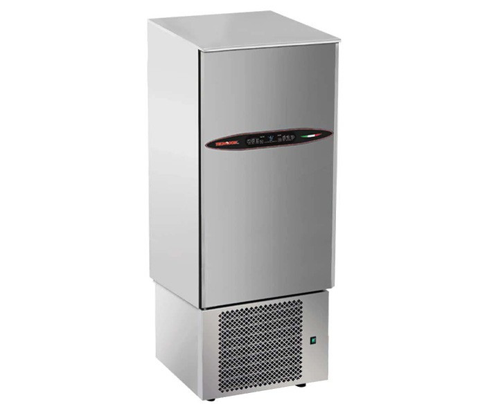 Olasz gyártású sokkoló hűtő, 20xGN1/1 vagy 20x600x400mm tálcamérettel, rozsdamentes acélból készült burkolattal, egyaránt alkalmas gasztronómiai és cukrászati felhasználásra.