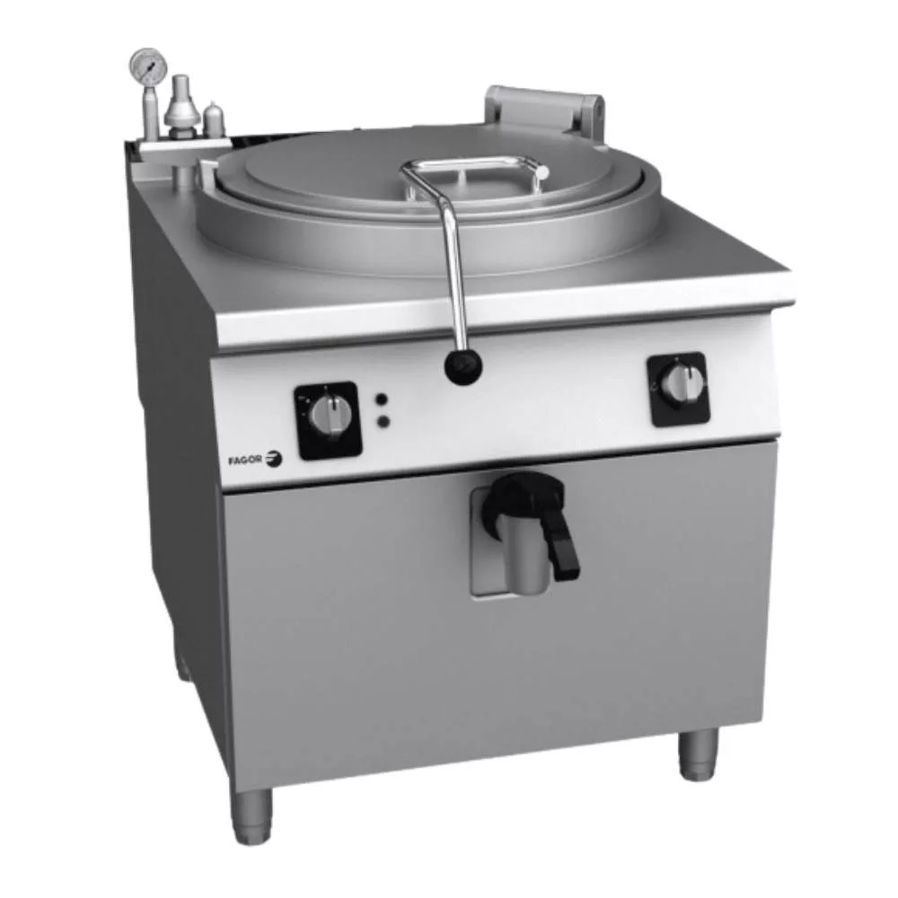 Spanyolországban gyártott elektromos főzőüst, 100 literes üsttel. A készülék rozsdamentes acélból készült, indirekt fűtéssel; IPX5 védelemmel rendelkezik. Összteljesítmény: 22 kW.