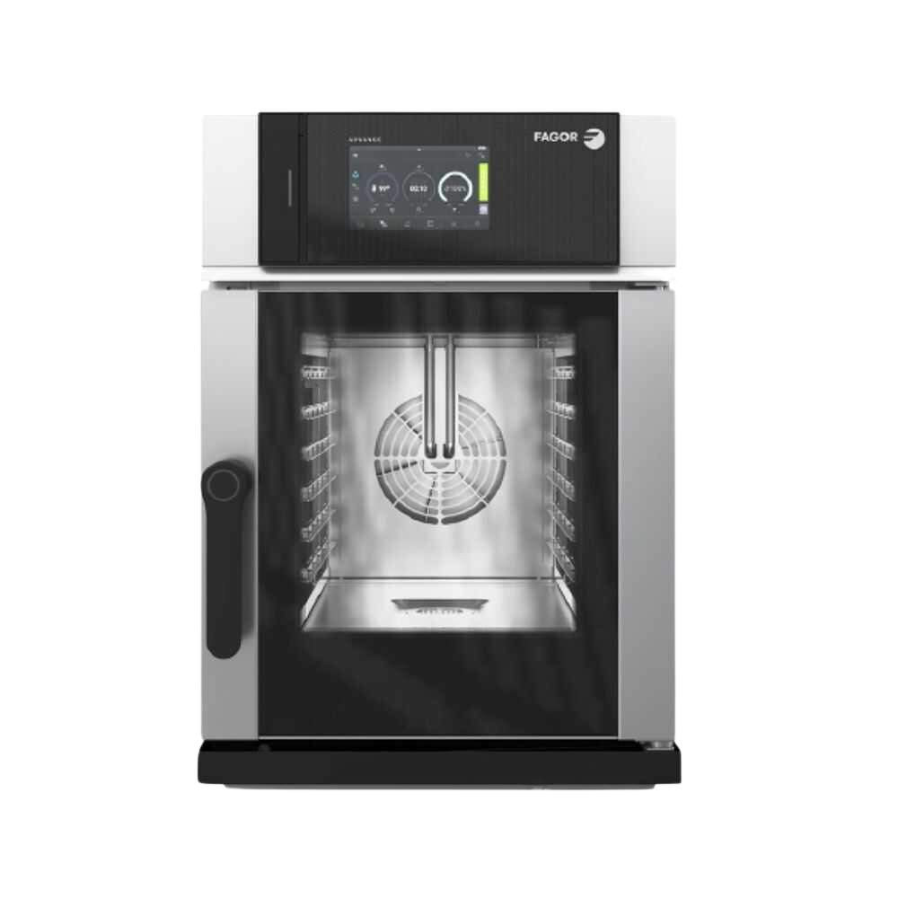 Nagykonyhai használatra tervezett elektromos, iKORE Kompact sütő, 10,1" érintőképernyővel, PureSteam (bojler), intelligens mosással, 6 db GN 1/1 tálcaférőhellyel, jobboldali nyitásal.