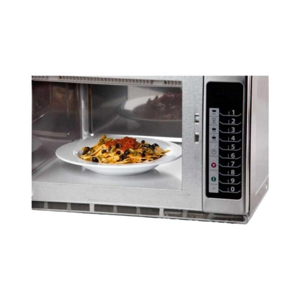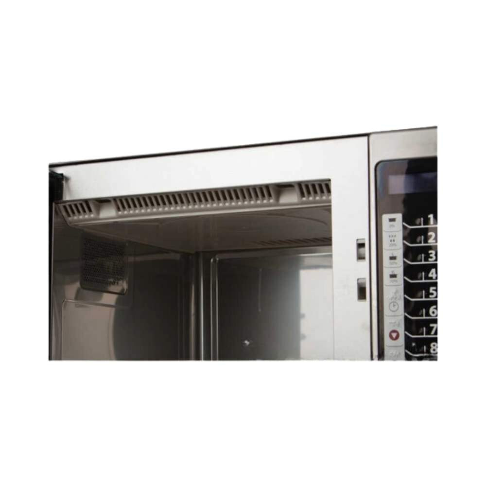 Professzionális minőségű, komoly üzemeltetőknek készült mikrohullámú sütő, digitális vezérléssel, 100 program menüponttal, 4 főzési fokozattal és 5 mikrohullámú teljesítményfokozattal. Ergonomikus egy ujjal nyitható ajtófogantyúval, rozsdamentes acélból. Nagy teljesítménye miatt gőzölésre is alkalmas, ami a legtáplálóbb és legfinomabb módja annak, hogy a halaktól a kagylós zöldségekig mindent tökéletesre pároljon. A kezelőpanel könnyen kezelhető, praktikus előbeállításokkal, amelyekkel igazi egyérintéses főzésre van lehetőség, és szinte nulla a hibázás esélye. Ez fontos lehet, ha a személyzet fluktuációja is kihívást jelent, vagy időt akarunk spórolni.