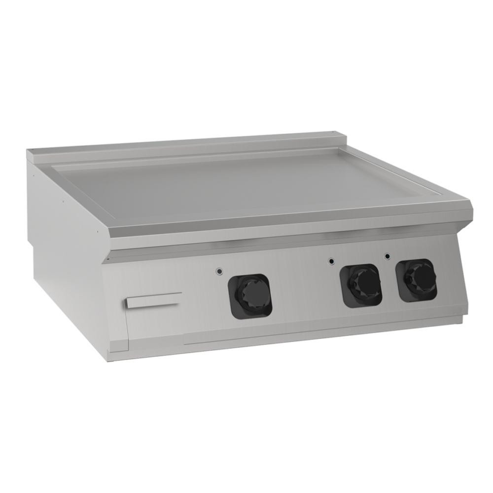 Sima felületű, 2 zónás rostlap. Tökéletes hőeloszlást biztosító sütőfelület.  Olajlefolyó csatornával és fiókkal rendelkezik. A 2 mm vastag, AISI 304 minőségű rozsdamentes acél fedlap könnyen tisztítható és karbantartható, valamint ütésálló.