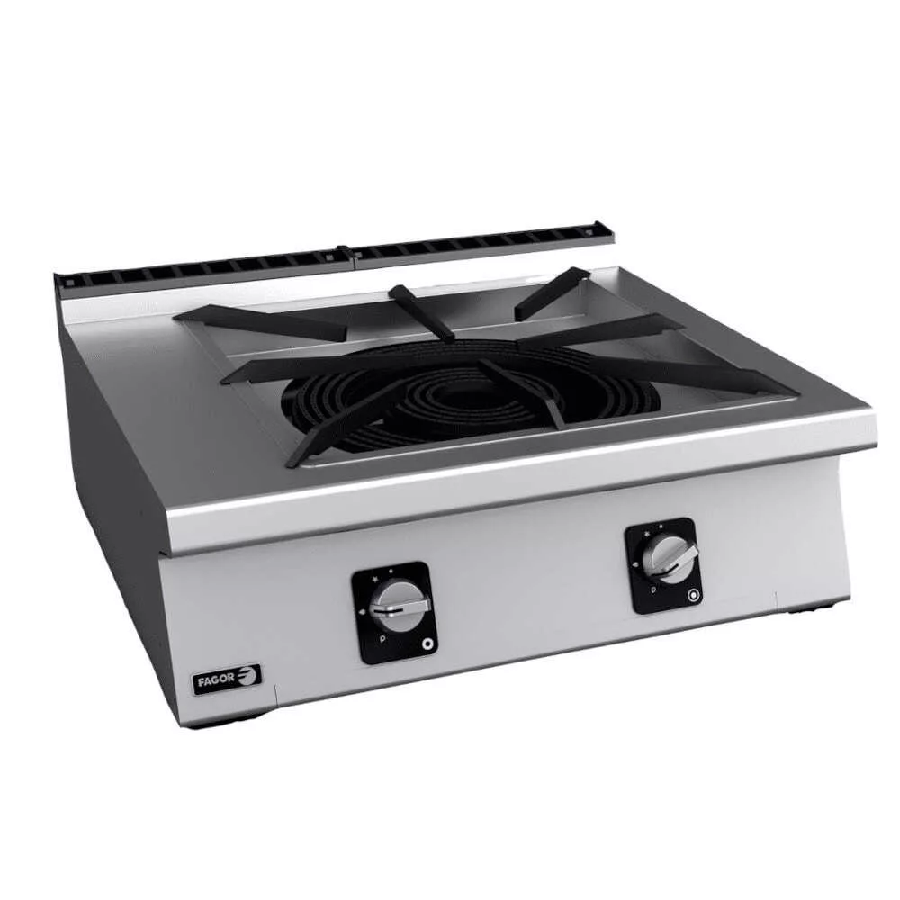 Spanyolországban gyártott, rozsdamentes acél kivitelű, gázüzemű asztali ipari paella-sütő tűzhely. Összteljesítmény: 27 kW.