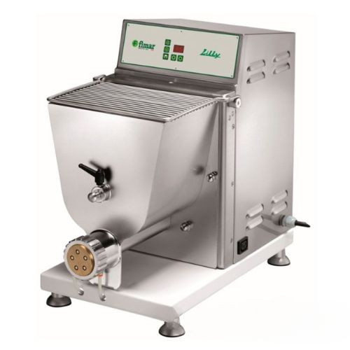 Olaszországból származó tésztakészítő gép, ciklusonként 3,5 kg tészta elkészítéséhez. Óránkénti kapacitása 13kg. AISI 304 rozsdamentes acél burkolat, tál, táltartó, dagasztóhorog és penge tartozik hozzá. Mikrókapcsolóval rendelkezik a tál fedelén.