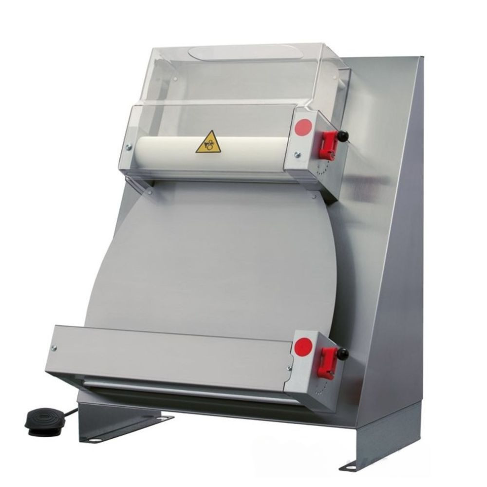 Olaszországból származó dupla görgős ipari tésztanyújtó gép. A tészta vastagsága állítható. A tészta súlya 210-600 g, a pizza átmérője 26-40 cm között szabályozható. A készülék elektromos pedállal rendelkezik.