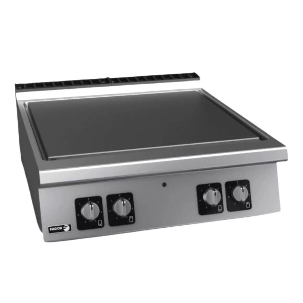 Spanyolországban gyártott, rozsdamentes acél kivitelű, gázüzemű asztali ipari tűzhely, 4 zónás. Összteljesítmény: 16 kW.