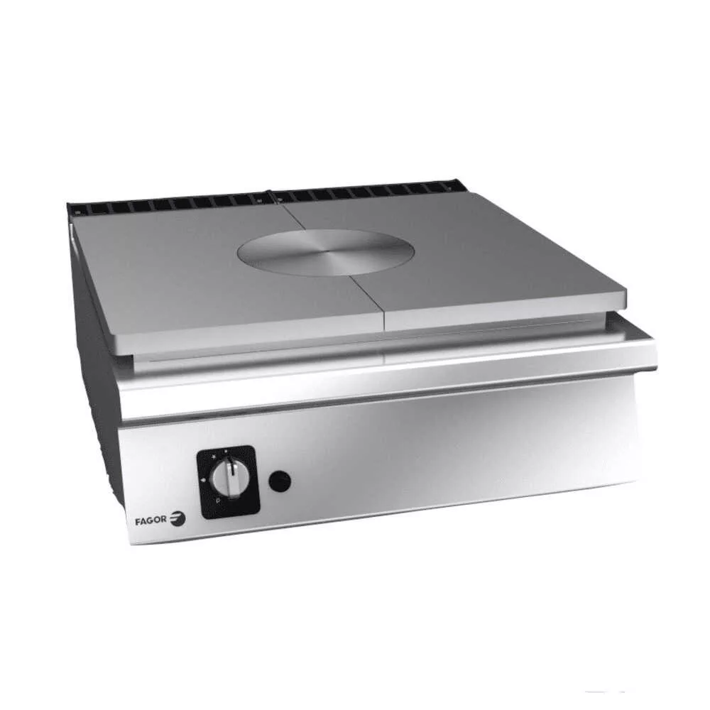 10 mm vastag öntöttvas főzőlappal. Különböző használati hőmérsékletek: 500 °C középen és 200 °C a széleken.
