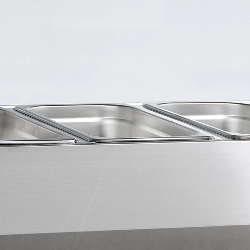 Professzionális GN1/3 edényekhez kialakított feltéthűtő, statikus hűtéssel és üveg leheletvédővel. Ideális pizzériákba, gyorséttermekbe és szendvicsbárokba, ahol fontos a gyors és higiénikus előkészítés. Tartós SS201 rozsdamentes acél kivitel, manuális leolvasztás, megbízható működés. A hozzávalók mindig kézközelben, optimális hőmérsékleten tarthatók.
