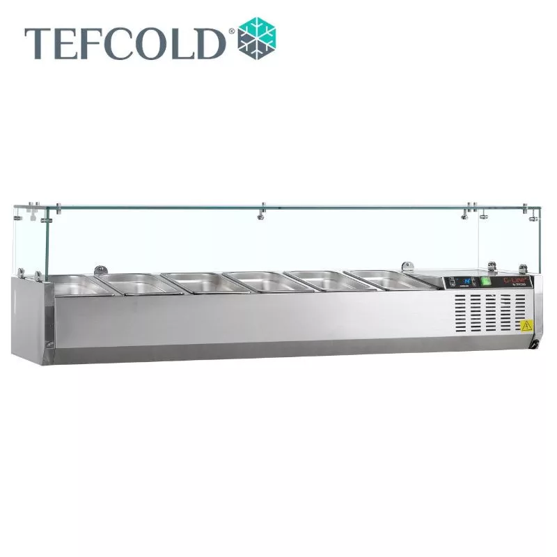 Tefcold Feltéthűtő, 6 x GN1/4, üveg leheletvédő, 1400 x 335 x 448 mm