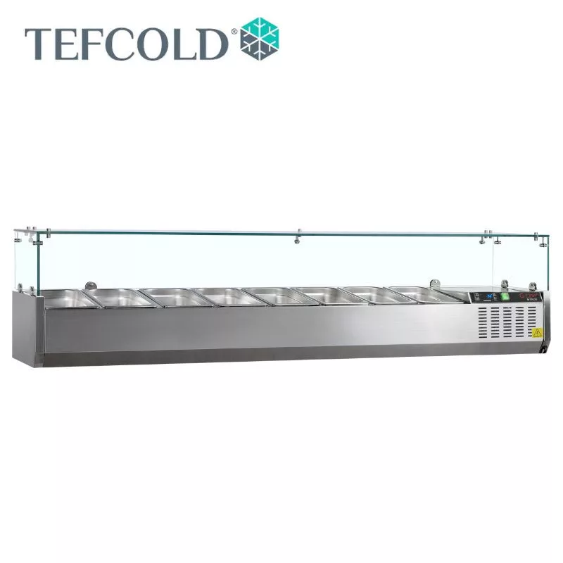 Tefcold Feltéthűtő, 8 x GN1/4, üveg leheletvédő, 1800 x 335 x 448 mm