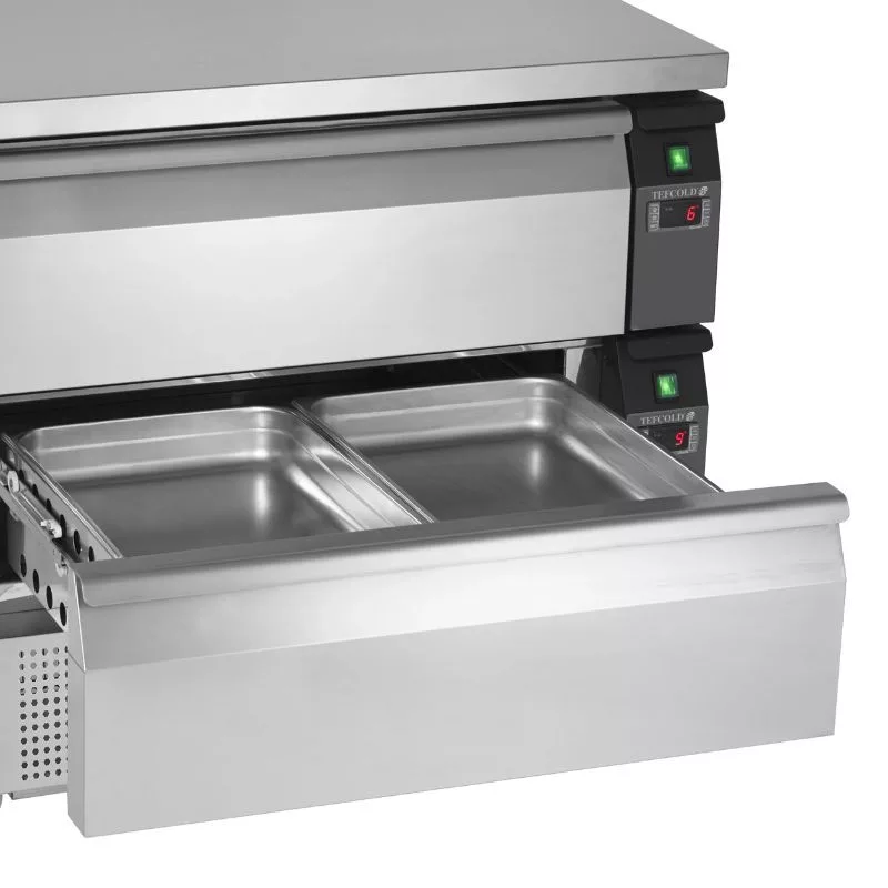 Ez a pult alá illeszthető hűtött/mélyhűtött alépítmény kimondottan olyan vendéglátóipari környezetek számára készült, ahol a helytakarékosság és a megbízható hűtés egyaránt fontos. GN kompatibilis belső tere lehetővé teszi a zsúfoltság csökkentését és a tálcák, GN-edények rendszerezett elhelyezését, így egyszerűsíti a gyors munkafolyamatokat a konyhán belül.