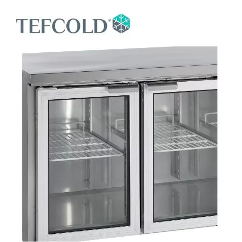 2 üveg ajtós hűtött munkaasztal, kívül-belül rozsdamentes acél kivitelben, ventilációs hűtéssel, automatikus leolvasztással. A felső munkalap eltávolítható, így a hűtő pult alá is beépíthető, és akár saját munkalappal is kiegészíthető.