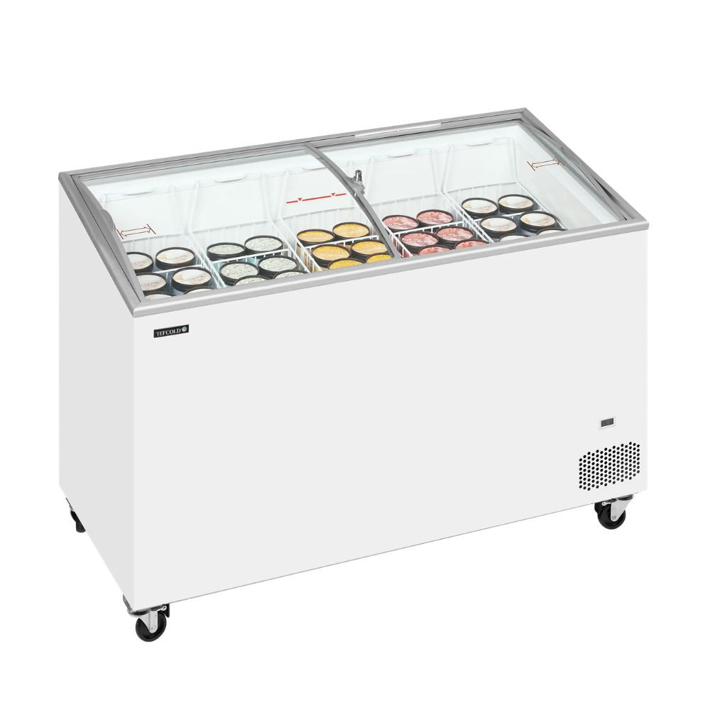 Masszív és stabil kialakításának köszönhetően hosszú távon is üzembiztos, ugyanakkor görgőkkel felszerelt, így könnyedén mozgatható az üzleten belül. Ez a modell ívelt tolóüveg fedelekkel készül, amely nemcsak esztétikus megjelenést biztosít, hanem jelentősen javítja a termékek láthatóságát is. Ez különösen előnyös fagylaltok, jégkrémek és egyéb fagyasztott áruk értékesítésénél.
