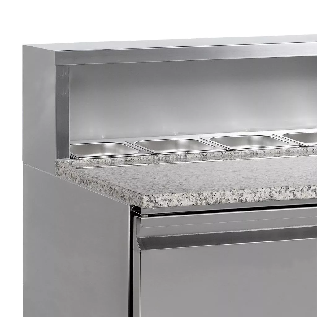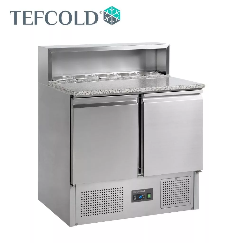 Tefcold pizza munkaasztal, rozsdamentes acél, 2 ajtós, gránit fedlap, GN1/6