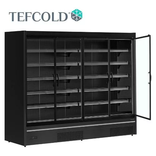 Tefcold hűtővitrin, 2098 literes, négy üvegajtós, ventilációs, fekete