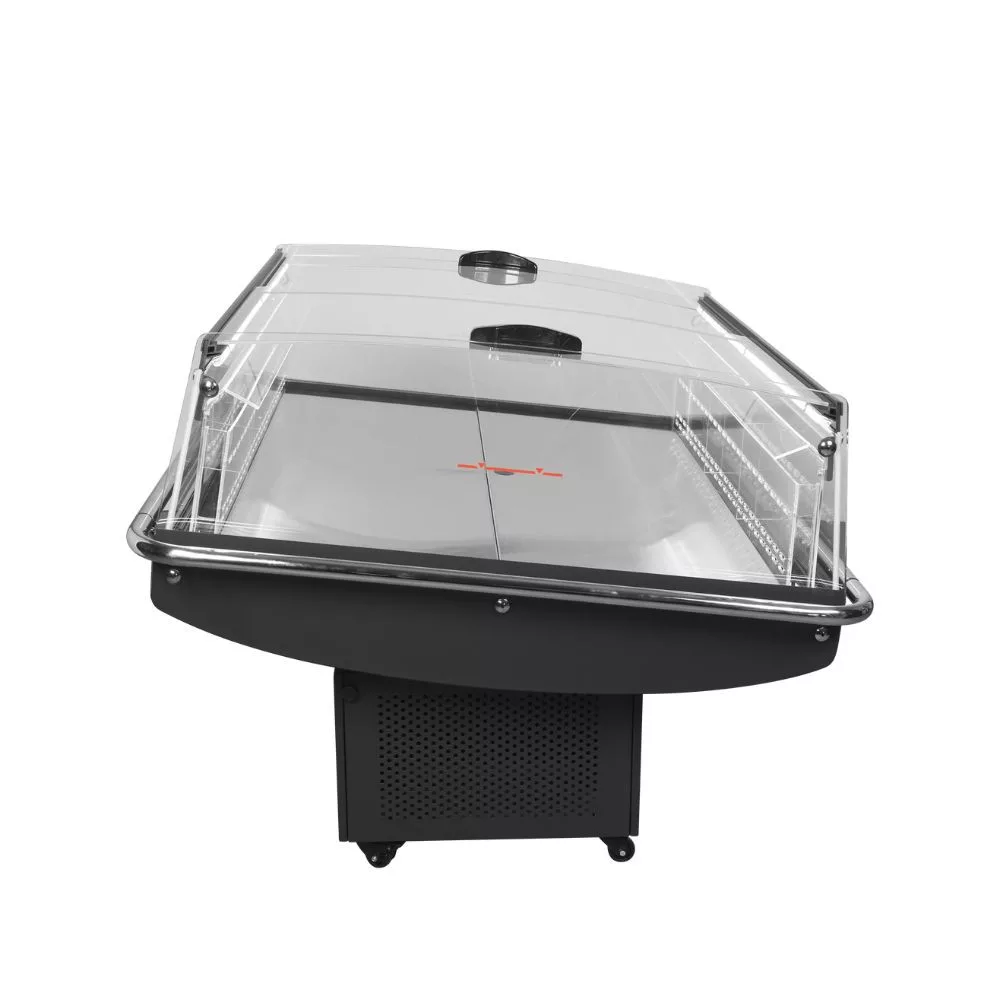 Modern impulzus hűtővitrin, amely kiemelkedő termékmegjelenítést biztosít minden értékesítési környezetben. Ideális friss ételek, italok, desszertek és egyéb azonnali fogyasztásra kínált termékek bemutatásához. A készülék ventilációs hűtéssel, tolóüveges felső hozzáféréssel és energiahatékony LED világítással rendelkezik, amely látványosan kiemeli a kihelyezett árut. A körben üvegezett kialakítás maximális láthatóságot, a fékezhető görgők pedig könnyű mozgatást tesznek lehetővé. Strapabíró fekete kivitelben, kompakt mérettel és könnyen tisztítható belső térrel készült, így bármilyen üzlettérben esztétikus és praktikus megoldást nyújt. Ideális választás szupermarketek, benzinkutak, pékségek, kávézók, büfék, gyorséttermek, hotel lobby shopok és modern vendéglátóipari egységek számára.