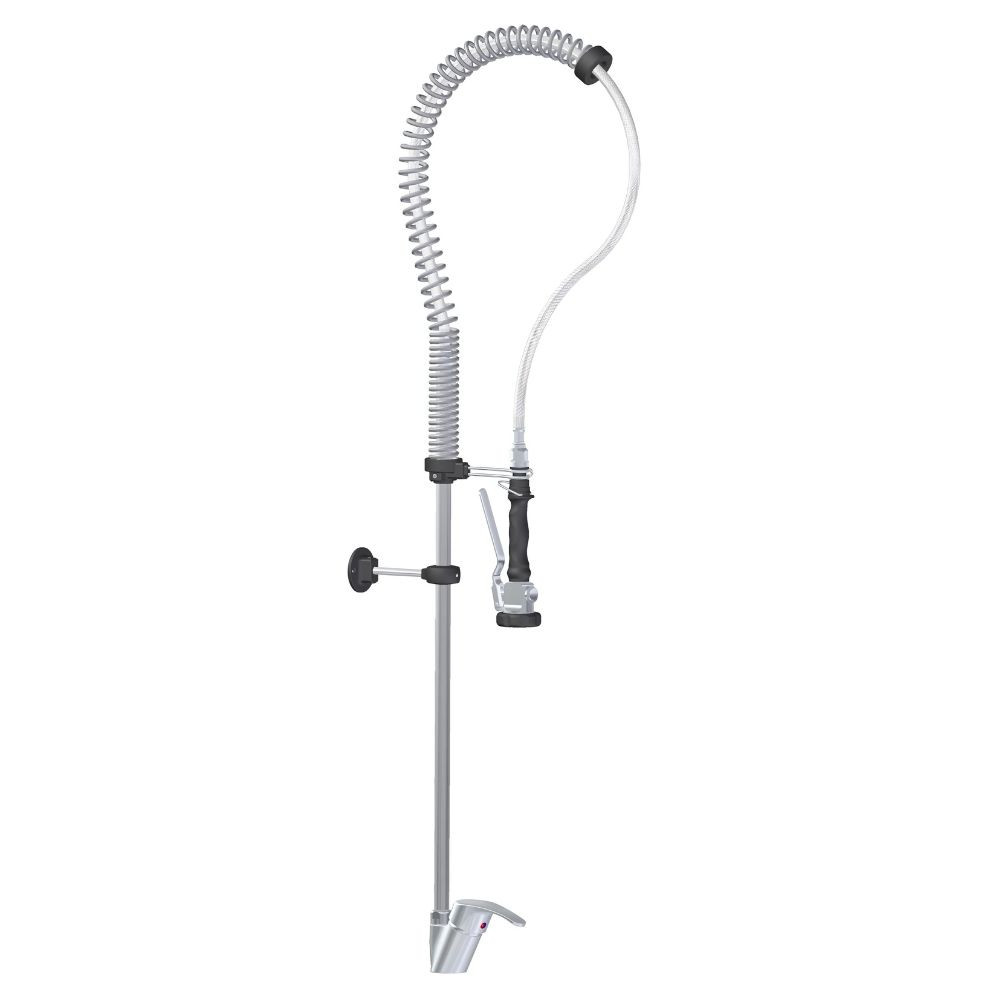 Asztali zuhany karos csapteleppel, nagy markolatú, kiakasztható zuhanyfejjel, erősített tömlővel. A nyitókar állandó áteresztése kirögzíthető.