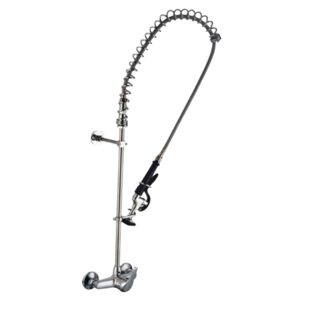 Zuhany karos csapteleppel, nagy markolatú, kiakasztható zuhanyfejjel, erősített tömlővel. A nyitókar állandó áteresztése kirögzíthető.