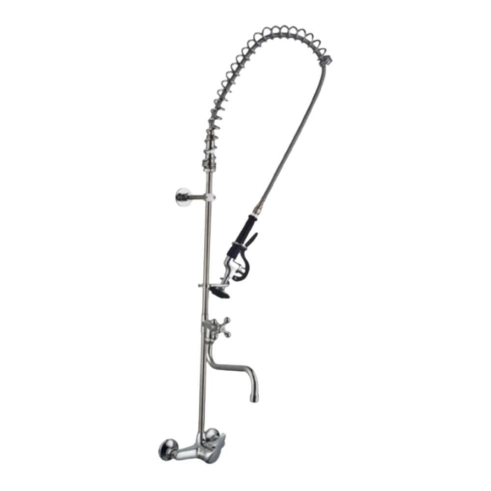 Zuhany karos csapteleppel, alsó vízvételi lehetőséggel külön kifolyón. Nagy markolatú, kiakasztható zuhanyfejjel, acél merevítőrugóval. A nyitókar állandó áteresztése kirögzíthető (fali rögzítő rúddal).