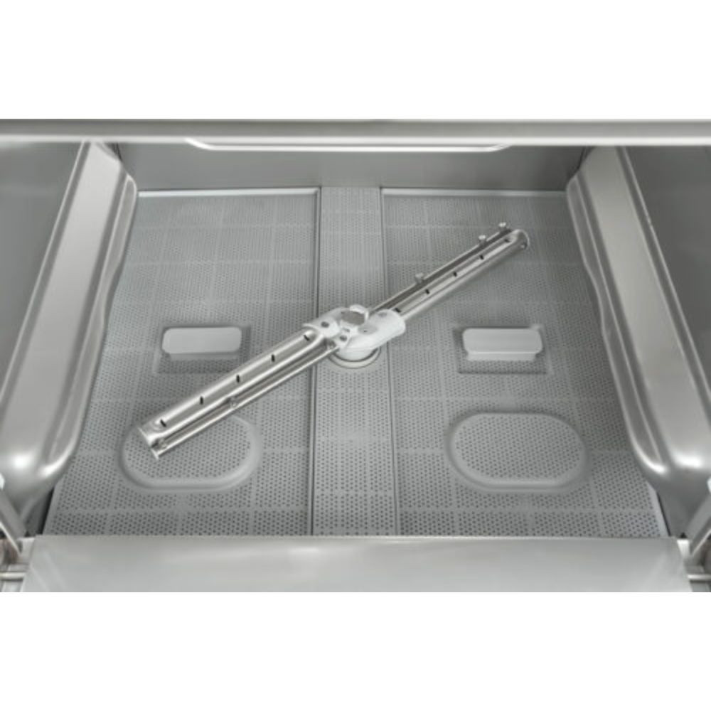 Elektronikus vezérlésű kereskedelmi mosogatógép. Az elektronikus vezérlőpanel lehetővé teszi a mosogatógép különböző munkafázisainak megjelenítését. Ideális választás vendéglátóhelyek, éttermek, közétkeztető helyek számára. A berendezés a magas olasz minőséget képviseli.