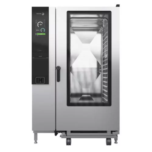 Nagykonyhai használatra tervezett elektromos, iKORE sütő, 10,1" érintőképernyővel, DirectSteam, intelligens mosással, 20 db GN 2/1 tálcaférőhellyel, regál kocsival.