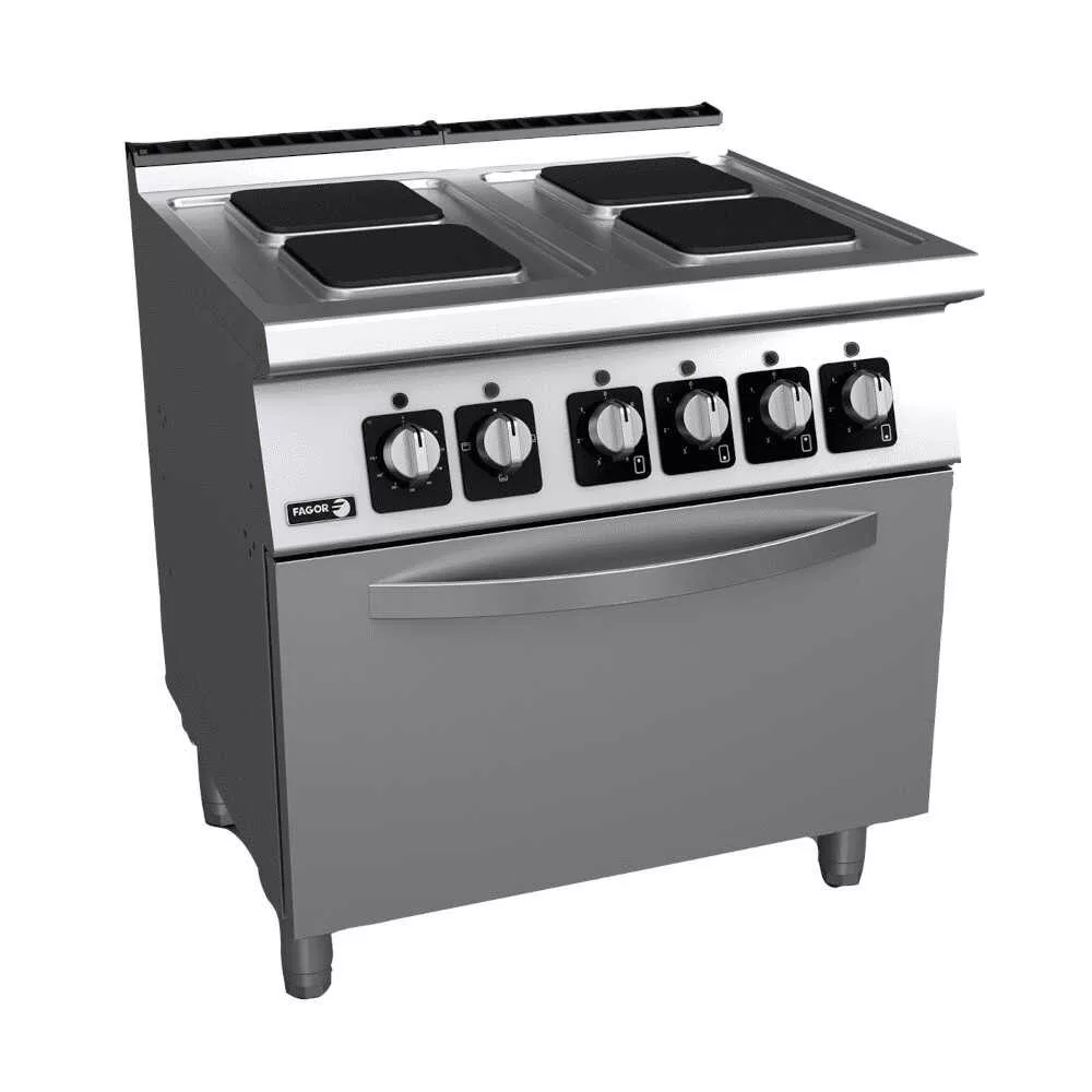 Spanyolországban gyártott, rozsdamentes acél kivitelű, ekektromos asztali ipari tűzhely, 4 lapos. Összteljesítmény: 16,40 kW.