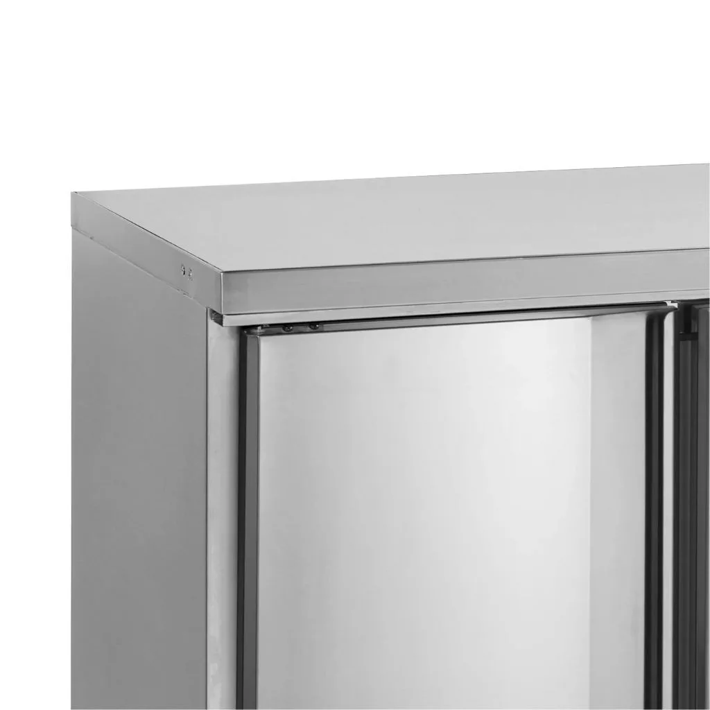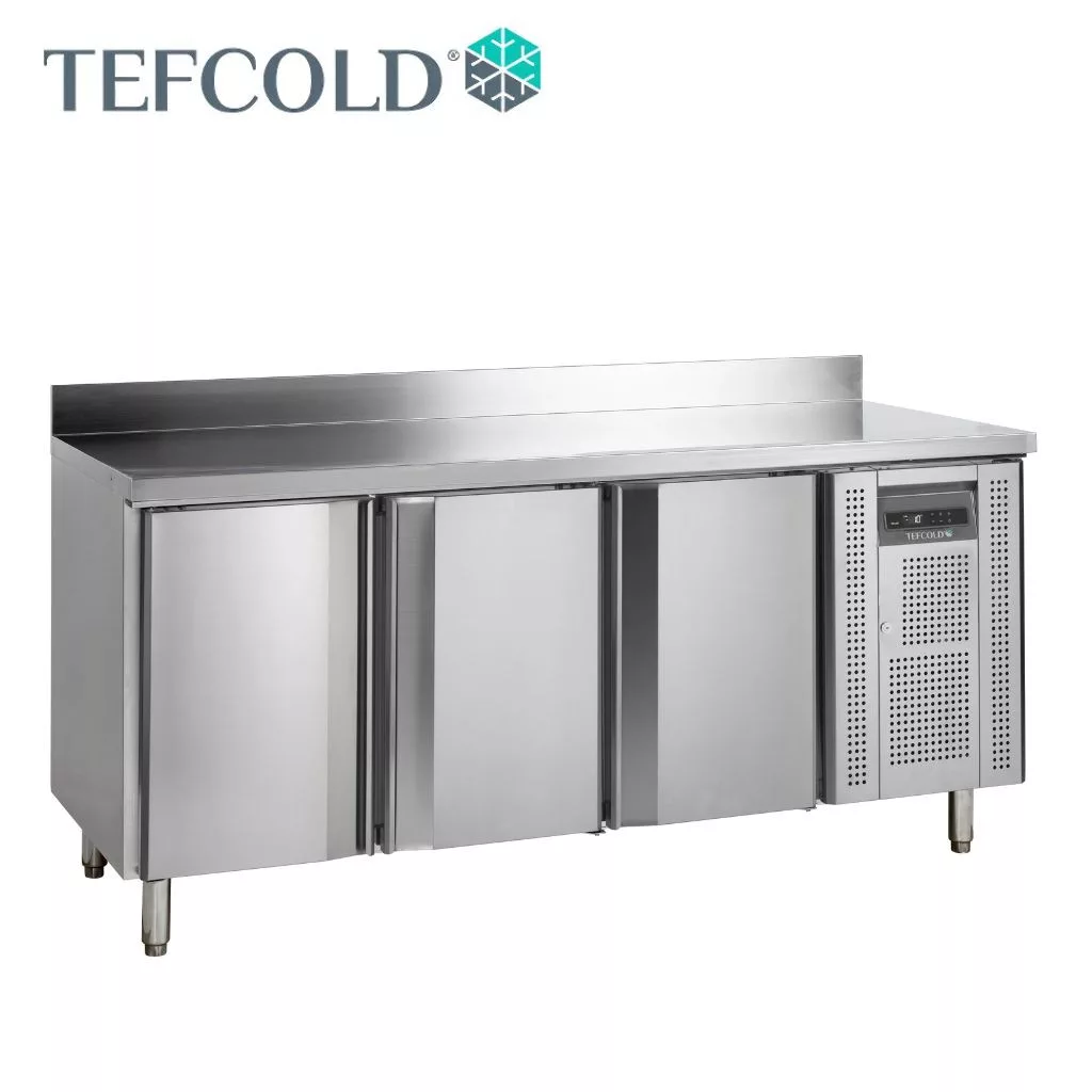 3 ajtós mélyhűtött munkaasztal, kívül-belül rozsdamentes acél kivitelben, ventilációs hűtéssel, automatikus leolvasztással. A készülék fröccsenésgátló peremmel ellátott munkalappal rendelkezik, amely eltávolítható, ha pult alatti hűtőként kívánja használni, és saját munkalapot szeretne ráhelyezni.