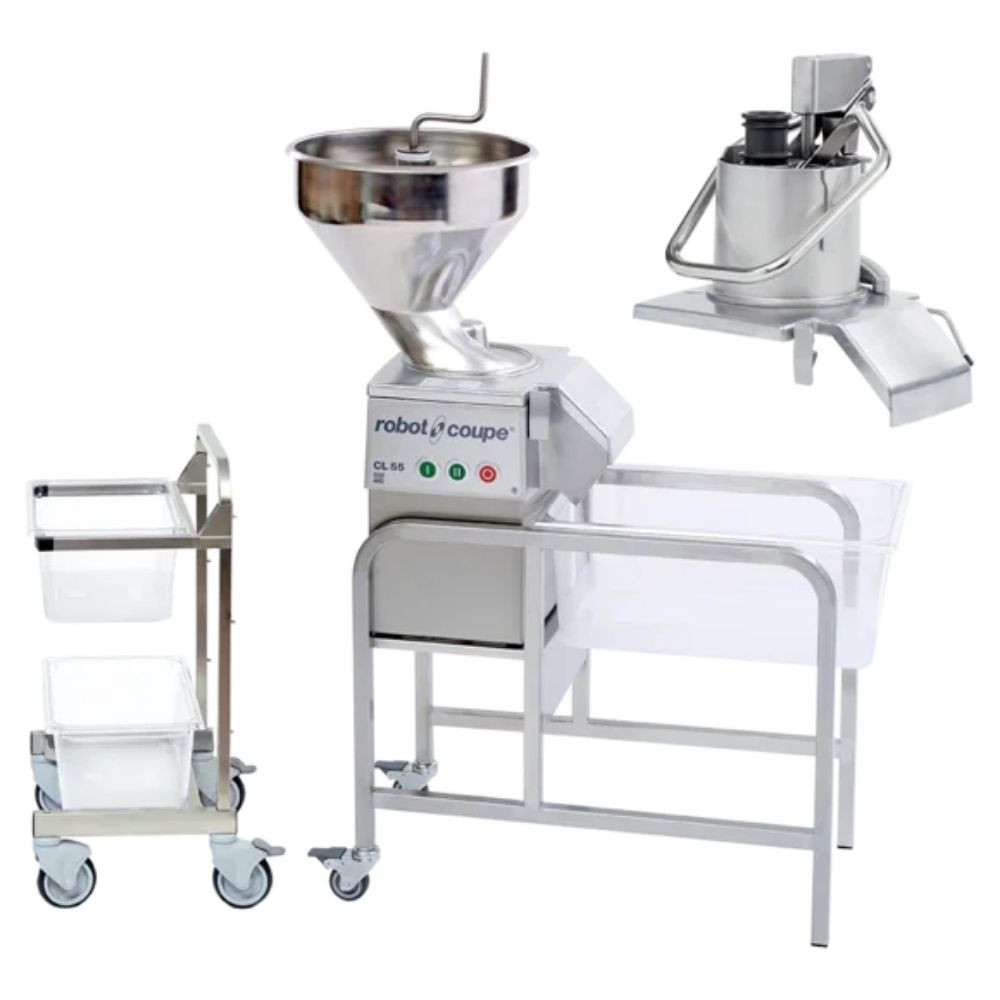 Zöldségszeletelő, állvánnyal, robusztus, hatékony, könnyen tisztítható nagy mennyiségű zöldség feldolgozásához.