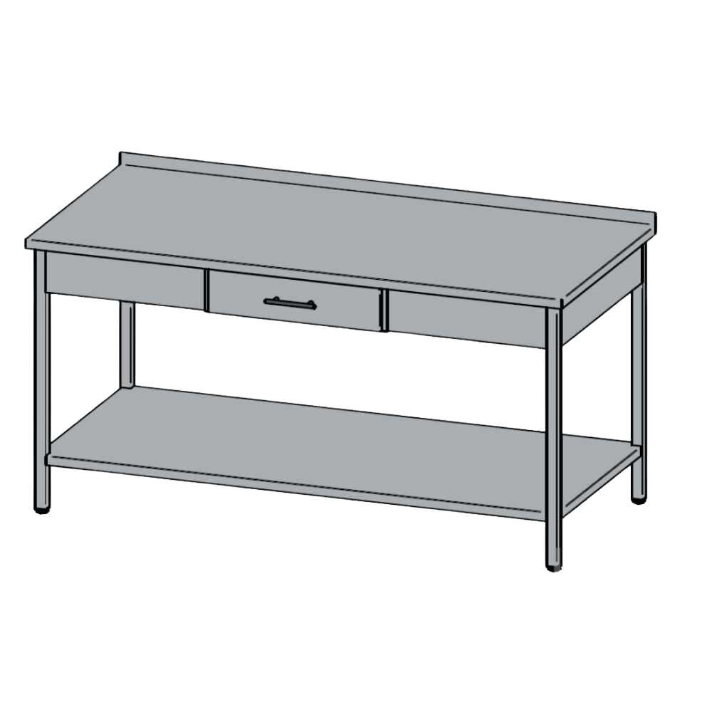 Rozsdamentes munkaasztal, fedlap alatti fiókkal, felhajtással, 110x60x85 cm