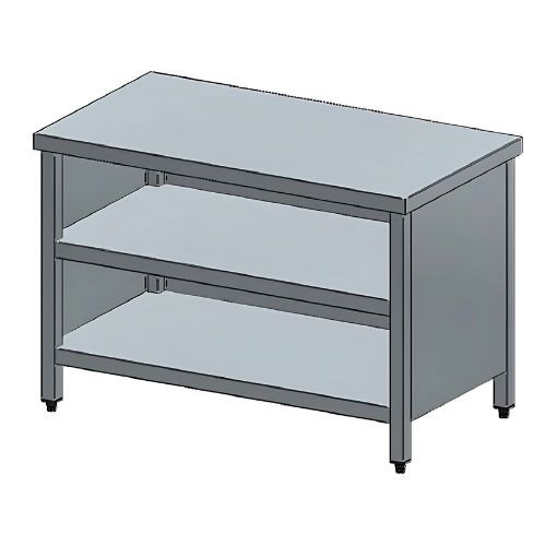 Tárolóasztal, nyitott, alsó és köztes polccal, felhajtás nélkül, 160x70x85 cm
