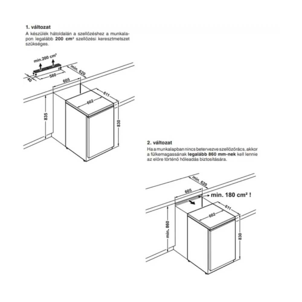 Mélyhűtő szekrény 143 literes térfogattal, pult alá helyezhető, statikus hűtés