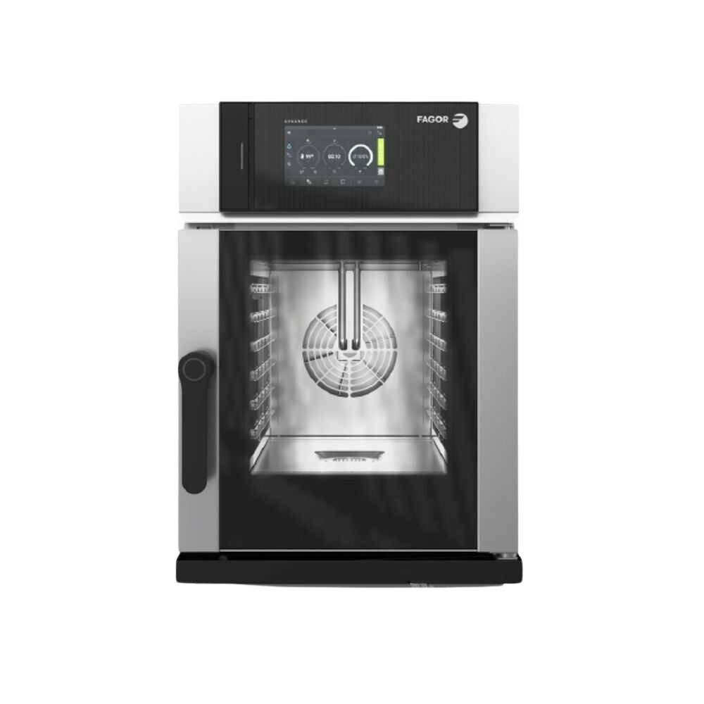 Nagykonyhai használatra tervezett elektromos, iKORE Kompact sütő, 10,1" érintőképernyővel, DirectSteam (direkt befecskendezéses), intelligens mosással, 6 db GN 1/1 tálcaférőhellyel.