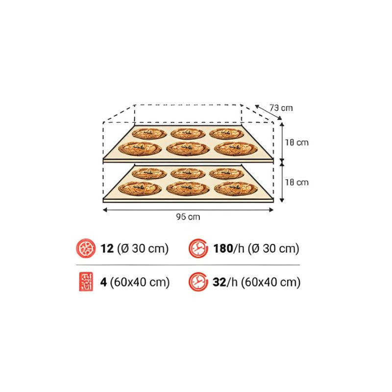 Moretti Forni serieP AMALFI pizzakemence, kétkamrás, elektromos, kelesztőszekrénnyel, elszívóernyővel, 12 db 30 cm átmérőjű pizzához, 132x110x185 cm