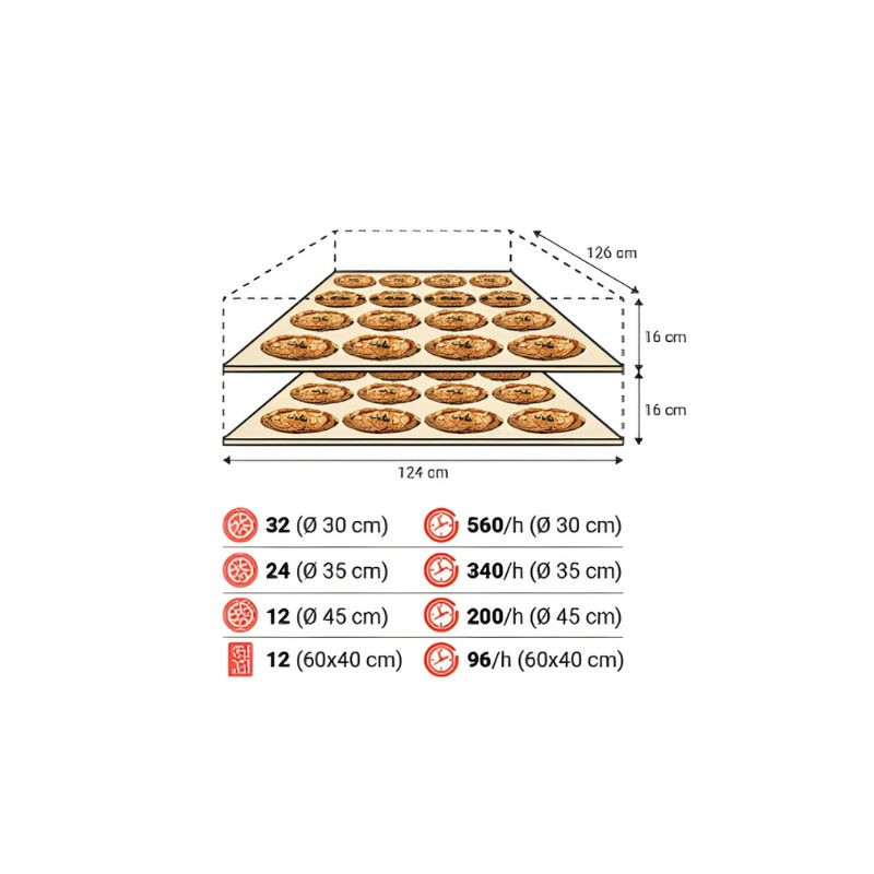 Moretti Forni serieS ICON pizzakemence, kétkamrás, elektromos, kelesztőszekrénnyel, elszívóernyővel, 32 db 30 cm átmérőjű pizzához