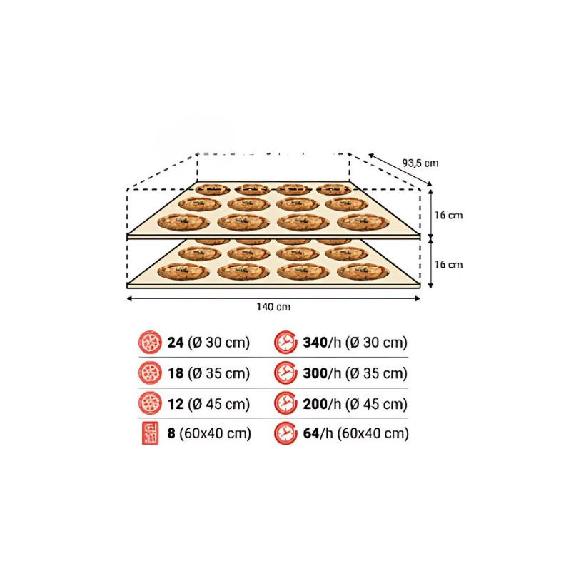 - Fastbake – speciálisan nápolyi típusú pizza gyors sütéséhez, akár 500 °C-ig hevül, és kb. 2 perc 30 másodperc alatt süthető vele