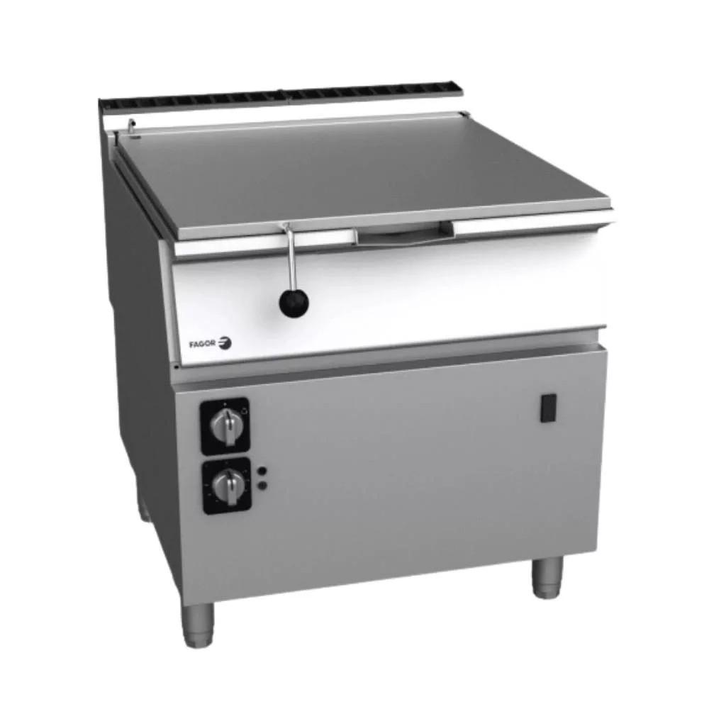 Nagykonyhai használatra tervezett gázüzemű billenő serpenyő berendezés.