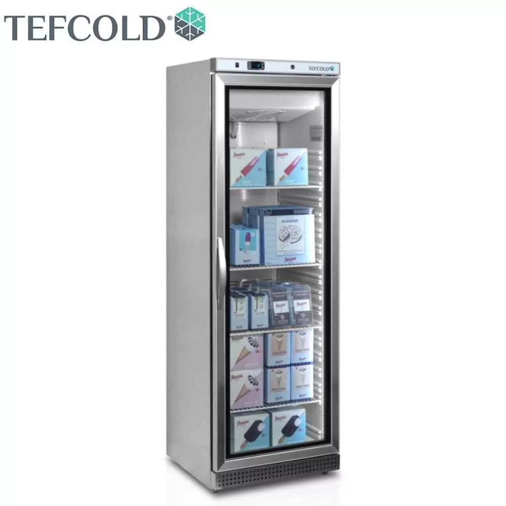 Professzionális üvegajtós fagyasztóvitrin, amely a kereskedelmi igényekhez igazított tároló- és bemutatófelületet biztosít. 400 literes bruttó kapacitásával (nettó kb. 340 liter) elegendő helyet kínál fagyasztott termékek — például készételek, desszertek, fagylaltok és csomagolt áruk — áttekintő és vonzó bemutatásához. A ventilációs hűtés egyenletes hőelosztást garantál, a beépített LED belső világítás pedig kiemeli a termékeket, miközben alacsony energiafelhasználást tesz lehetővé.